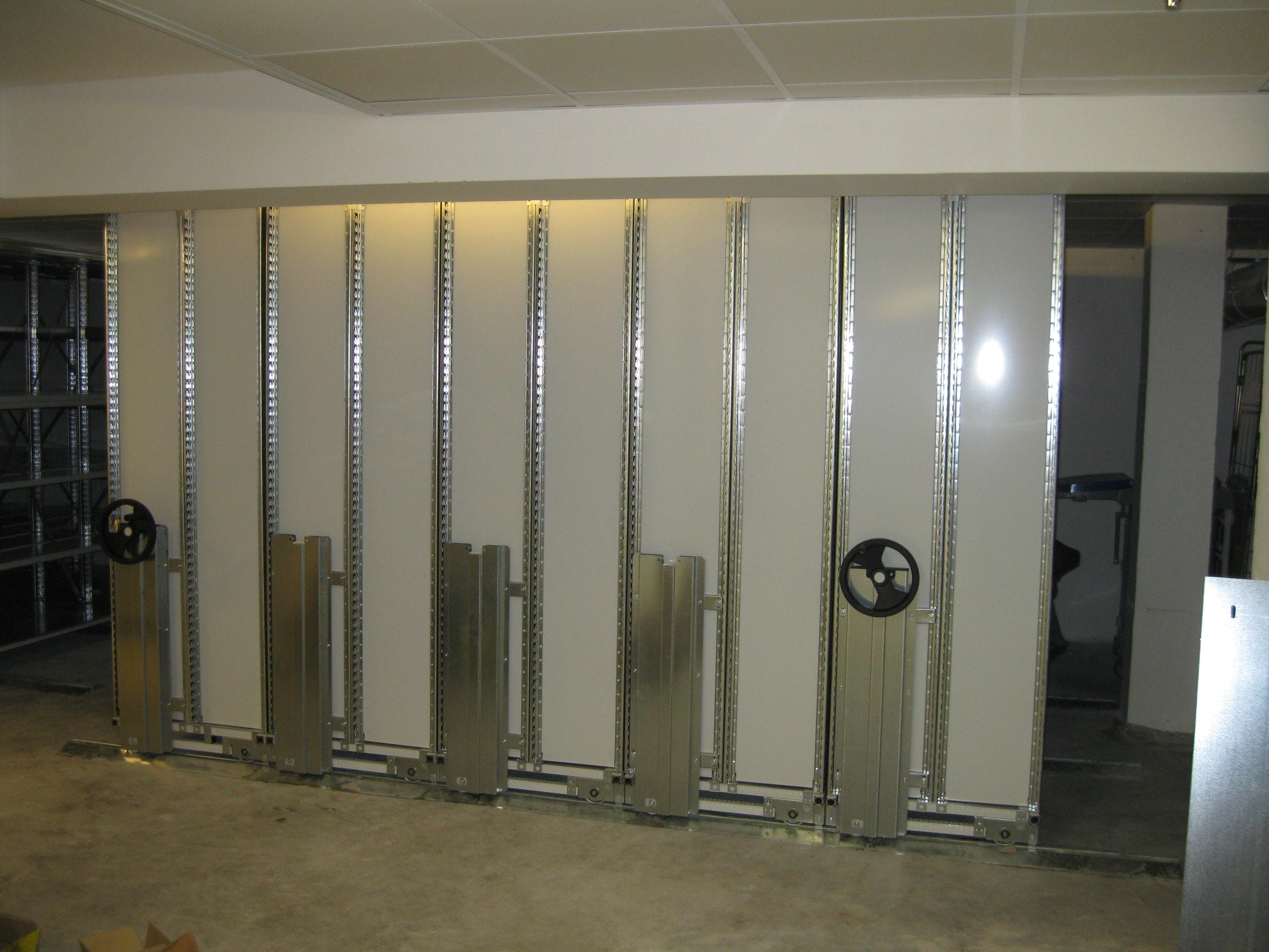 Mobile base systems increase storage density while maintaining full accessibility. A perfect solution for space challenged locations in environments such as offices, small shops, archives and alike.